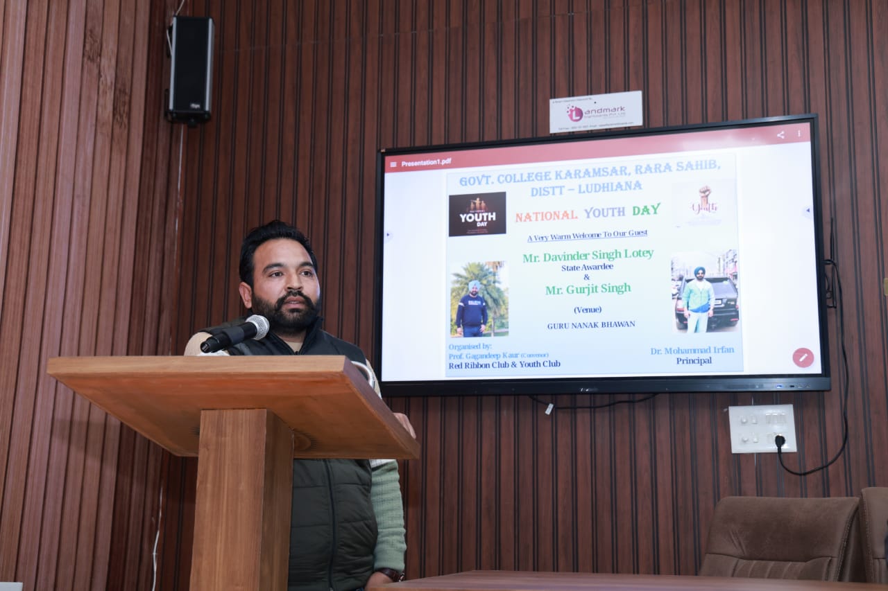 ਸਰਕਾਰੀ ਕਾਲਜ ਕਰਮਸਰ ਵਿੱਚ ਮਾਨਸਿਕ ਸਿਹਤ ਅਤੇ ਨਸ਼ਿਆਂ ਦੀ ਰੋਕਥਾਮ ਸਬੰਧੀ ਵਿਸ਼ੇਸ਼ ਭਾਸ਼ਣ ਅਜੋਯਿਤ ਕੀਤਾ ਗਿਆ ਜਿਸ ਵਿੱਚ ਡਾ. ਸਰਬਜੀਤ ਸਿੰਘ ਸਾਬਕਾ ਮੁੱਖੀ ਪੱਤਰਕਾਰੀ ਅਤੇ ਜਨ ਸੰਚਾਰ ਵਿਭਾਗ ਖੇਤੀਬਾੜੀ ਯੂਨੀਵਰਸਿਟੀ ਲੁਧਿਆਣਾ ਸ਼ਾਮਿਲ ਹੋਏ ਮਿਤੀ 04/11/2025
