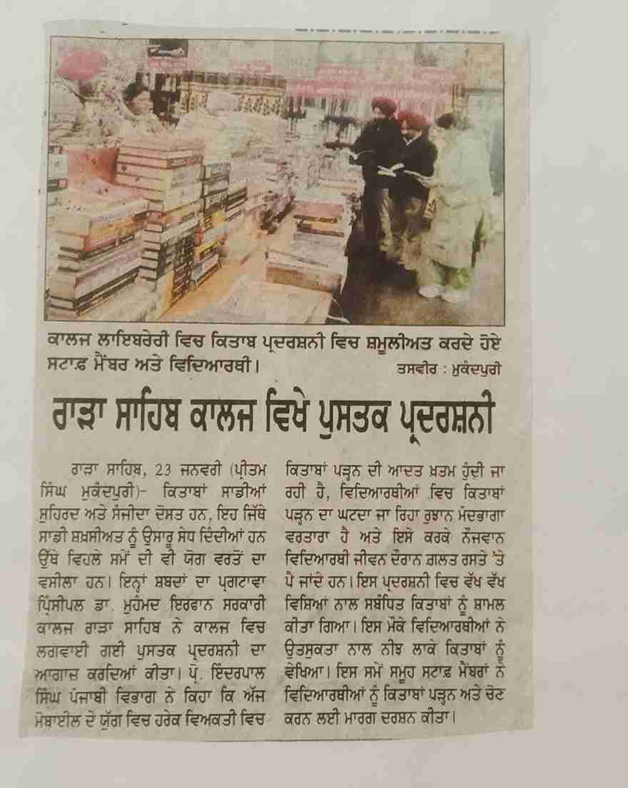 ਰਾੜਾ ਸਾਹਿਬ ਕਾਲਜ ਵਿੱਚ ਪੁਸਤਕ ਪ੍ਰਦਰਸ਼ਨੀ ਕਰਵਾਈ ਗਈ ਮਿਤੀ 22/01/2025